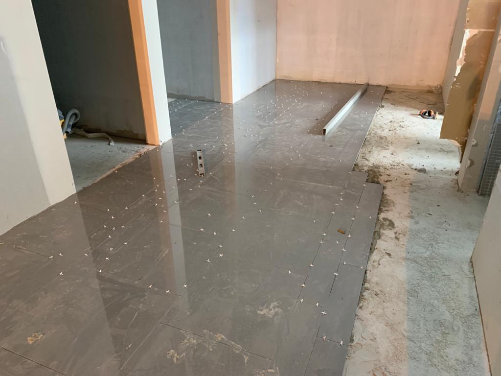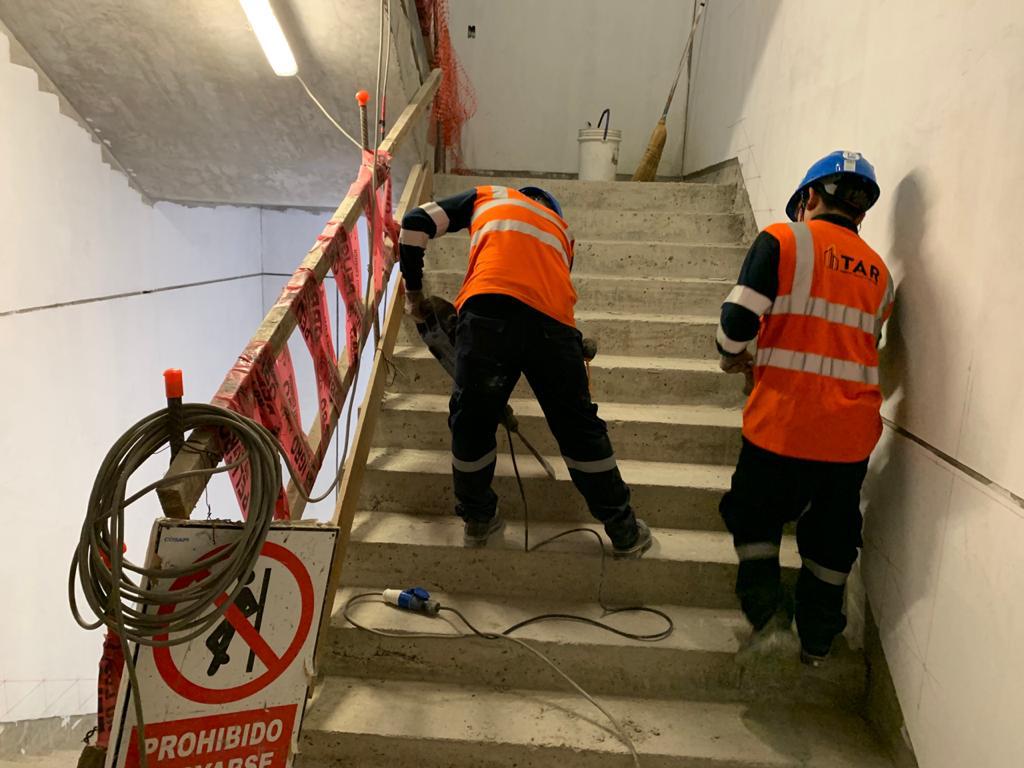 Prestación de servicios de acabados que incluyeron forjado de pasos y contrapasos para escaleras de concreto desde el sótano 01 hasta el sótano 05, ejecución de descansos con acabado en cemento pulido, construcción de contrazócalos en cemento pulido en escaleras de concreto, tarrajeo de ojos de escalera y servicio de enchape y fraguado de pisos en el hall de ascensores con porcelanato desde el segundo hasta el octavo nivel.