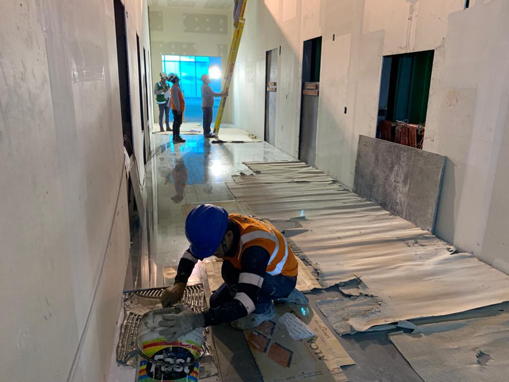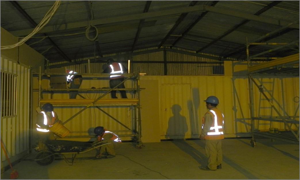 Desarrollo de obra civil que incluyó la construcción de losas de concreto armado, muros de albañilería, losas aligeradas, columnas y vigas de concreto armado, acabados en tarrajeo y pintura, así como la implementación de los sistemas de electricidad y de agua y desagüe.